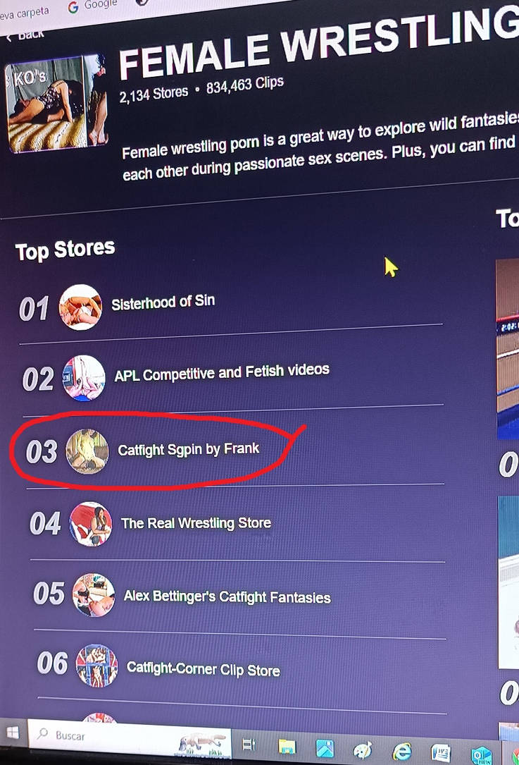 Catfight Sgpin by Frank afford today the podium 3RD PLACE in Female wrestling rank at clips4sale.com/105160