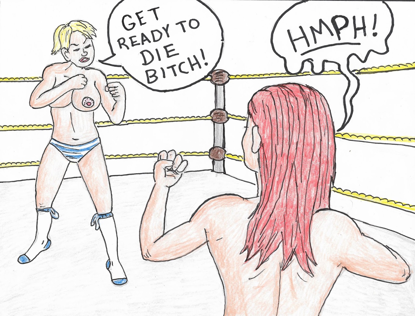 It has been a long day and I head to The Poison Lair to wrap up the day with a Birthday Girl Death Match.  Red haired Andrea has been challenged to a fight to the death by a former Academy Rival, a girl from House Blonde, Gizelle.  The two had many run ins in their Academy days, including a few private fights, and Gizelle is chomping at the bit to put the ginger haired fighter down for good.