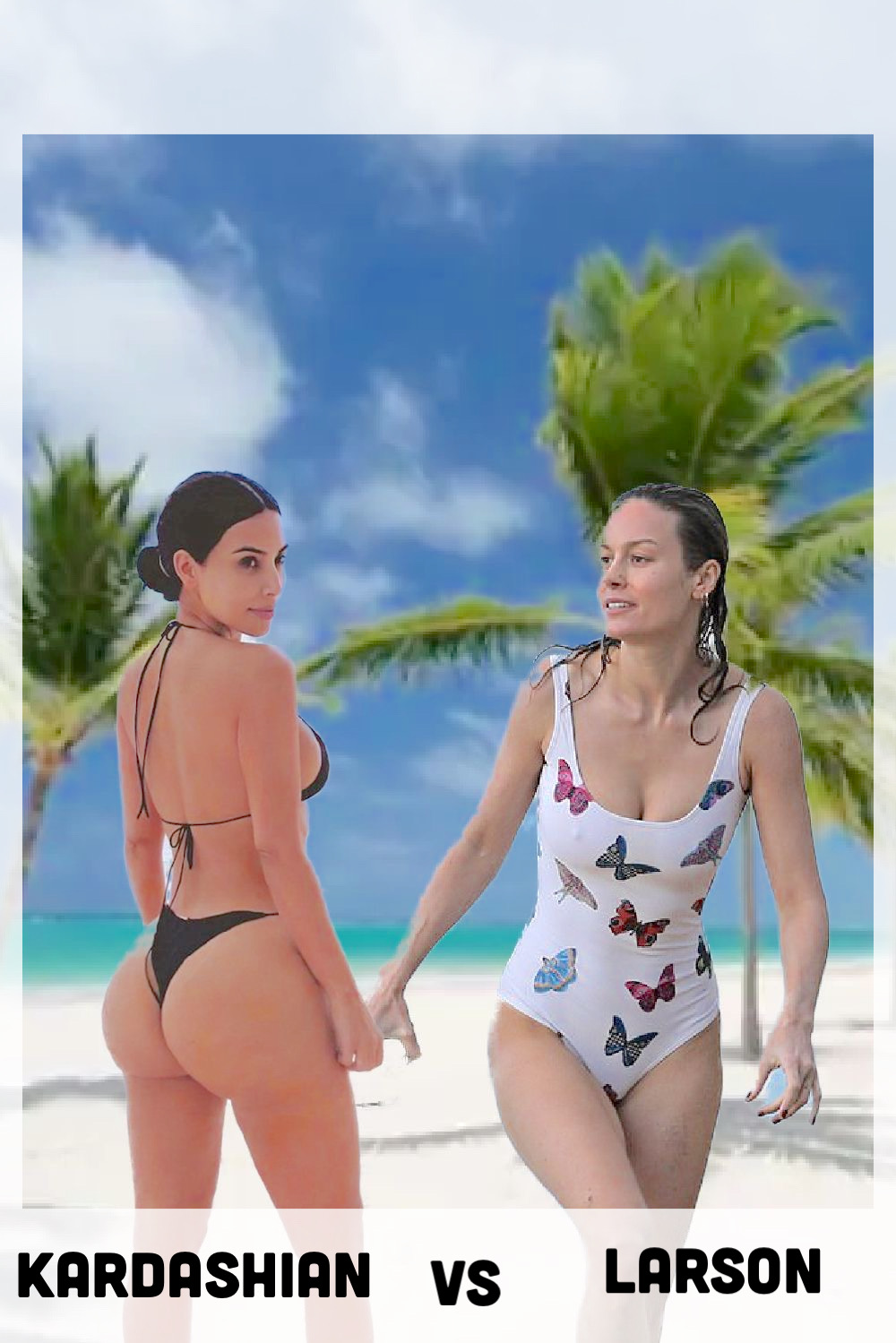 Larson side-stepped, caught Kim in a Side Headlock and hip-tossed her over and back down on her back in the sand. Brie added to the breathtaking impact by landing her hip square on Kardashians tummy, driving all the air out of her body. A short elbow smash further disoriented Kim who was unable to offer any resistance when Brie planted her bosom squarely over Kim’s face, wrapped her arms around her head to prevent any chance of turning away, and then rode her face into the sunset. When Kardashian went limp, Brie stood up, posed with her foot planted firmly on the brunette's flattened bosom. The rapidity of Brie Larsons victory sent shockwaves thru the tournament as the other women got the message that Captain Marvel was taking this thing seriously!