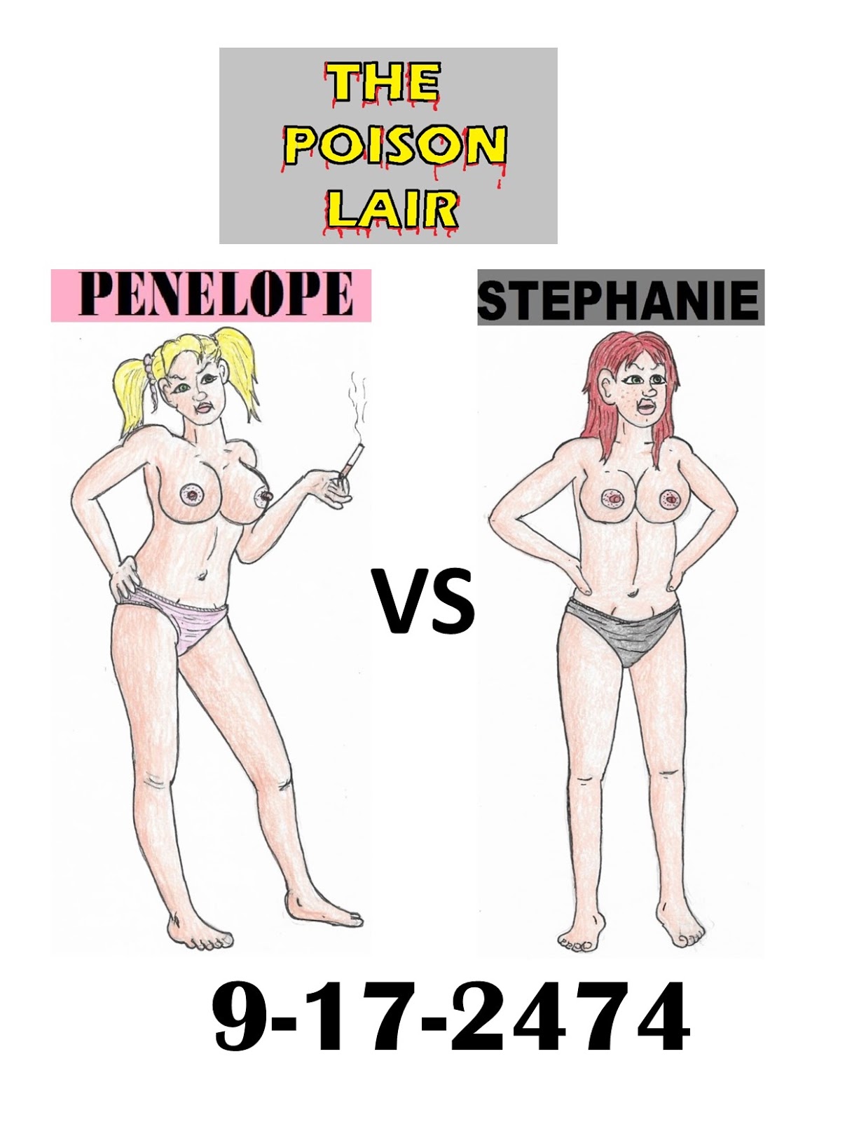 19 Year old Stephanie (in the Gray panties) has a decent record, with 24 wins, 6 losses and 2 kills after just one year in the violent Green Tower City, but tonight he faces off against the notorious 26 year old Penelope (in the pink panties) who has 135 wins, 25 losses, and 28 kills.