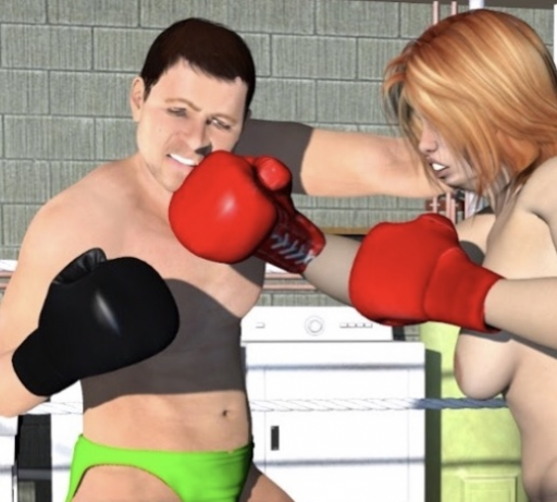 "Who wants to fight me first?" I smirked and looked first at my mom and then at my busty sister. Kathy came at me with confidence in her eyes. She was a bit tipsy as well and unsecure on her legs. She flexed her thick arms and shook her massive breasts at me, before going into the fighting stance. She crouched and was ready to attack. I copied her stance and got ready as well. I looked at mom: "Will you be giving the start signal?"